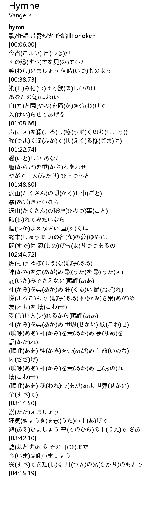 | [03:00.62] | 悦(よろこ)んで (嗚呼(ああ) 神(かみ)を崇(あが)め 友(とも)を 壊(こわ)せ) |