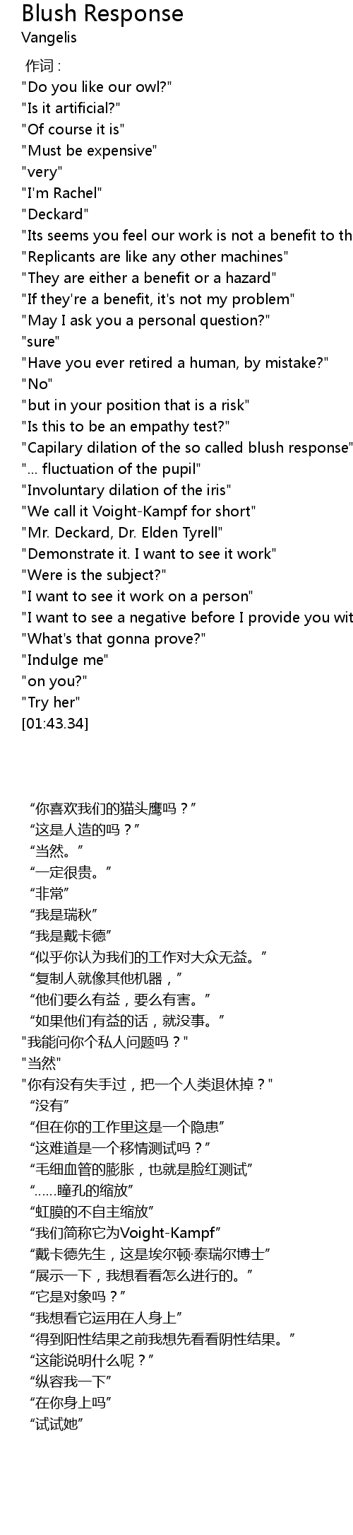 | [00:31.44] | " Replicants are like any other machines" |