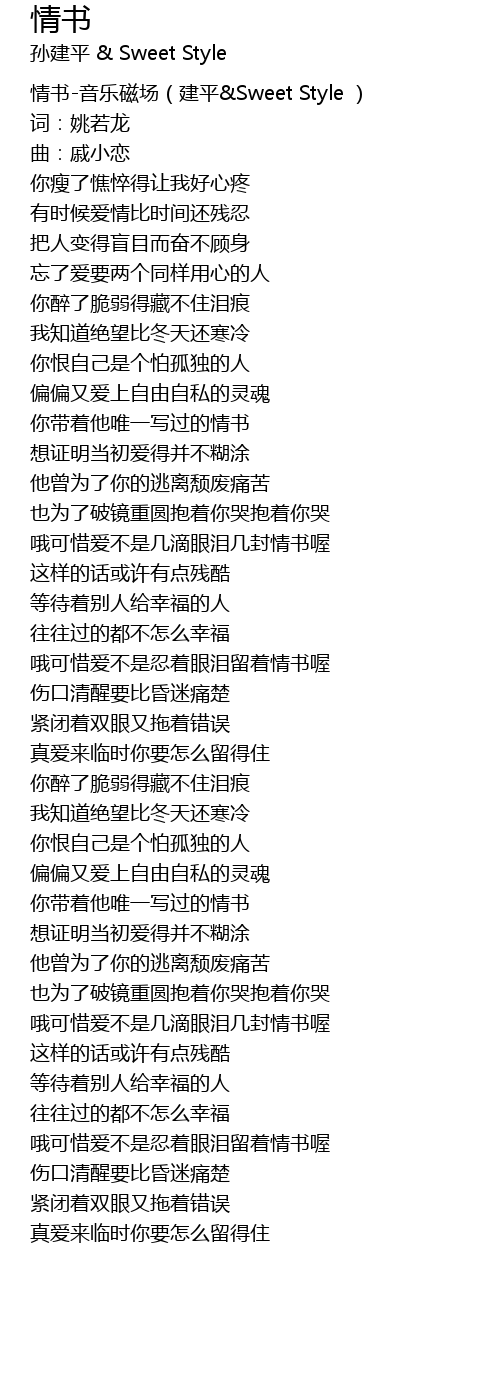 | [00:00.00] | 情书-音乐磁场(建平&Sweet Style ) |