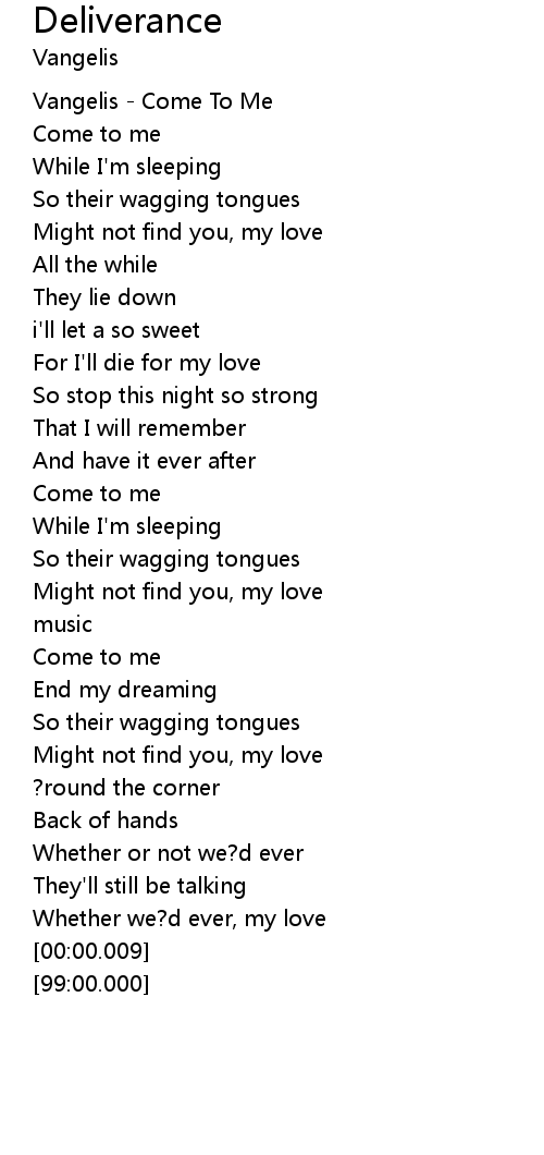 | [00:00.100] | Vangelis - Come To Me |
