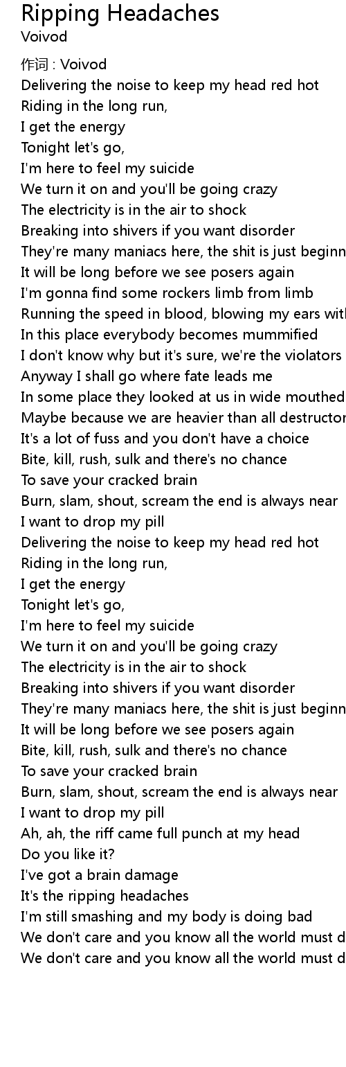 | Song | Ripping Headaches |