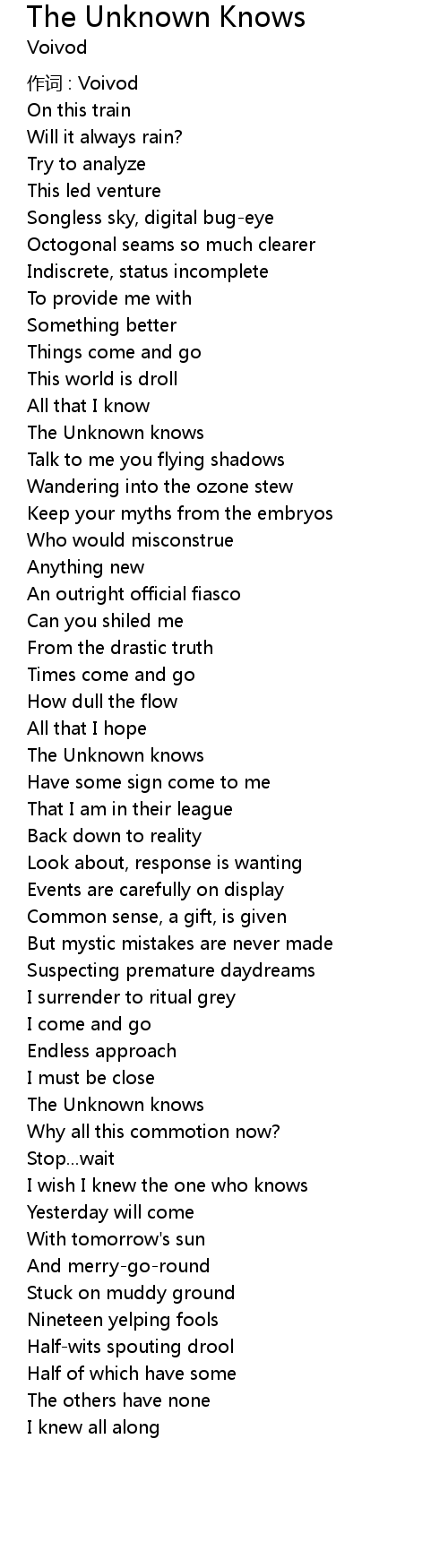 | Song | The Unknown Knows |