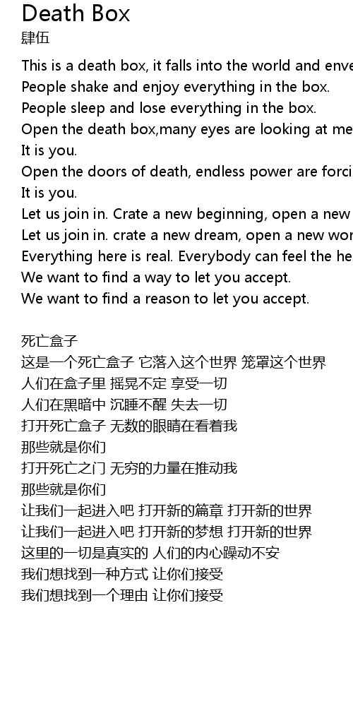 | Open the death box,many eyes are looking at me. | |