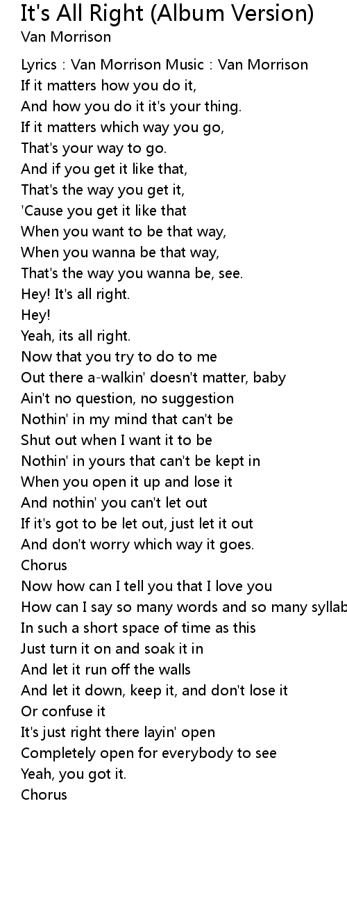 | Lyrics:Van Morrison Music:Van Morrison | |