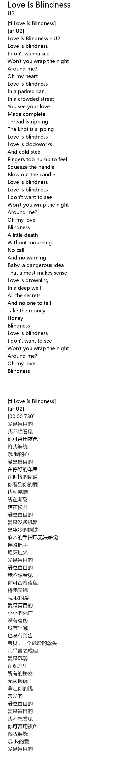 [ti:Love Is Blindness] |
