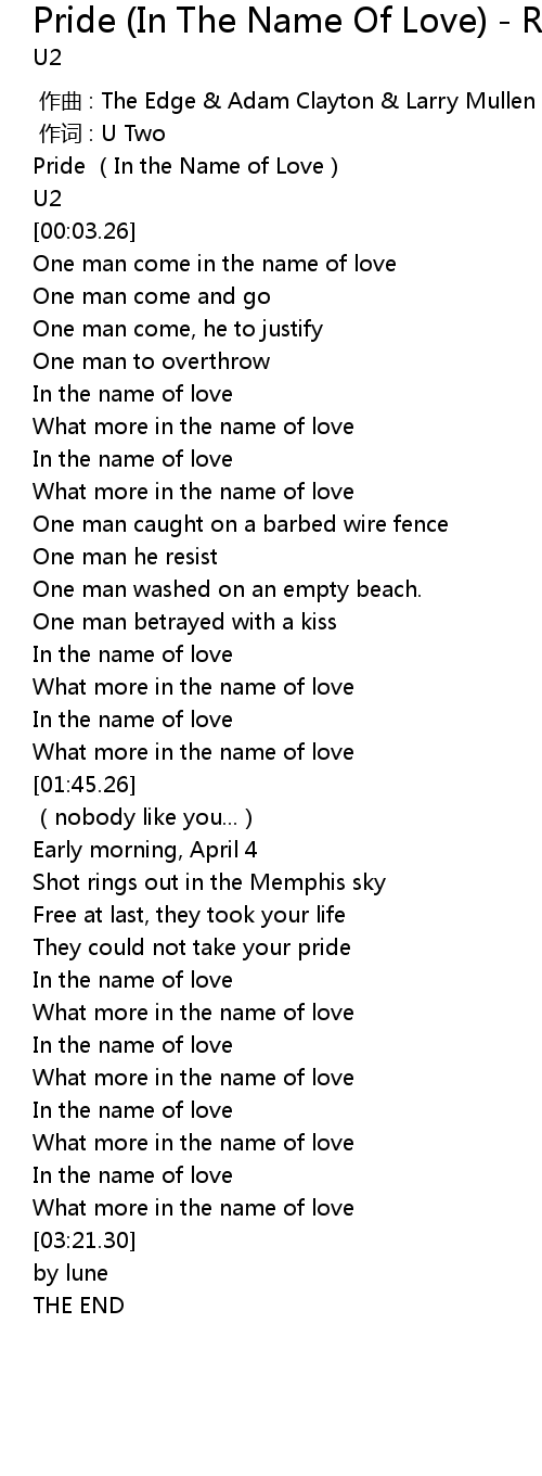 | [00:01.51] | Pride (In the Name of Love) |