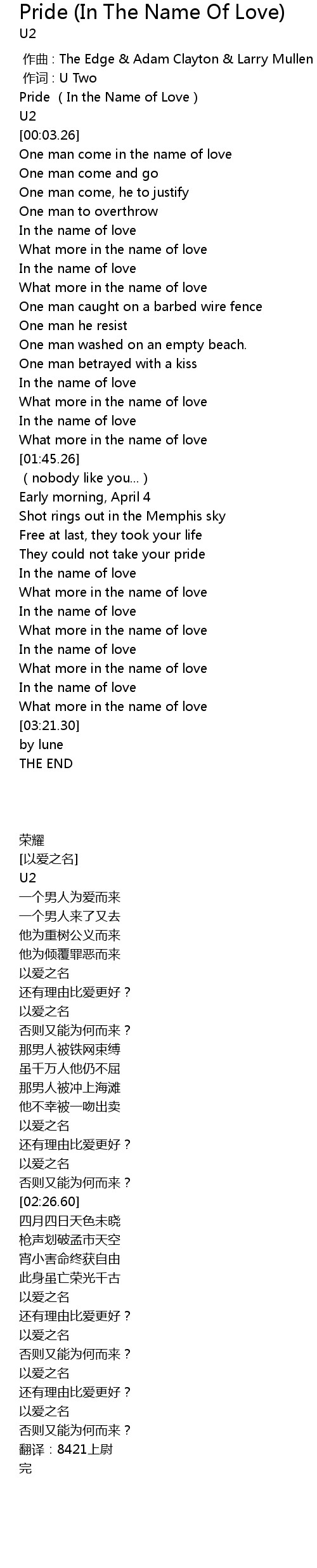 | [00:00.00] | 作曲 : The Edge & Adam Clayton & Larry Mullen & Bono |