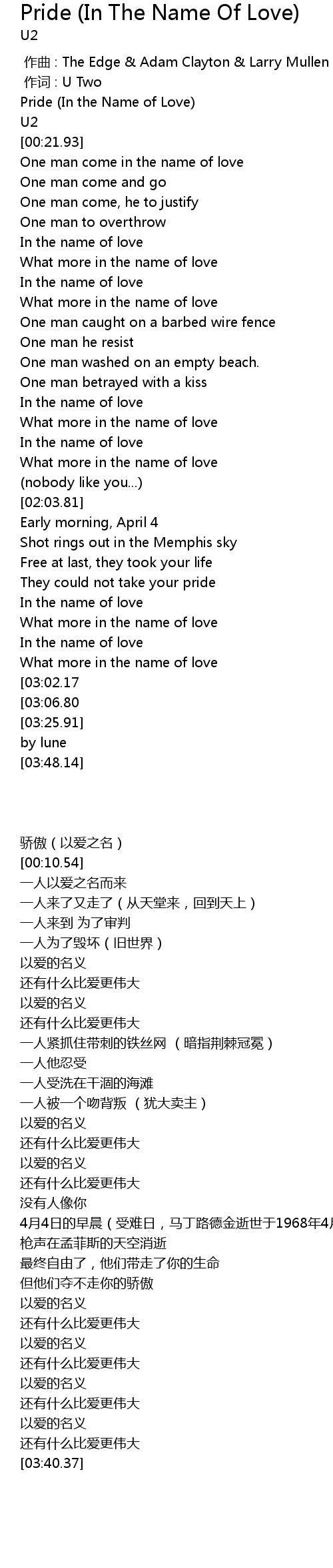 | [00:00.00] | Pride In the Name of Love |