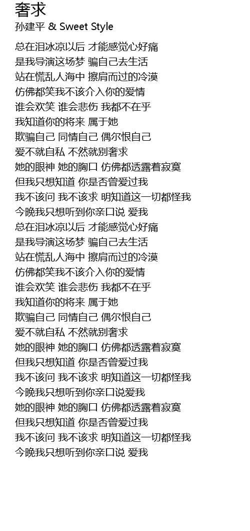 | Song | 奢求 |