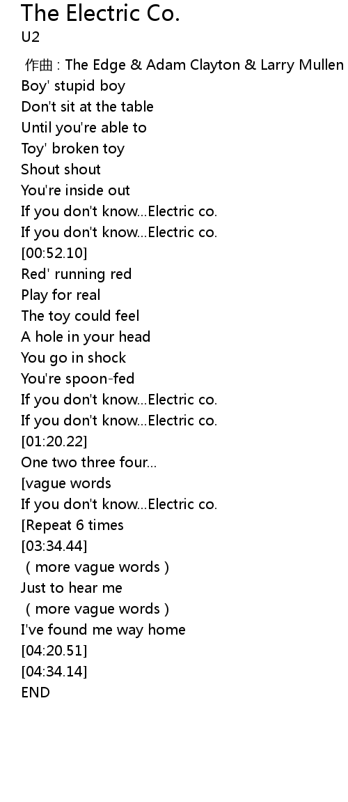 | [00:00.00] | 作曲 : The Edge & Adam Clayton & Larry Mullen & Bono |