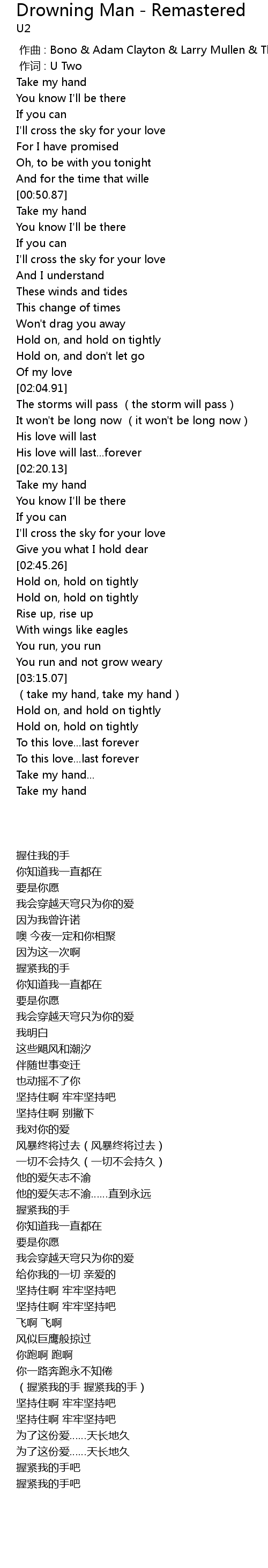 | [00:00.00] | 作曲 : Bono & Adam Clayton & Larry Mullen & The Edge |