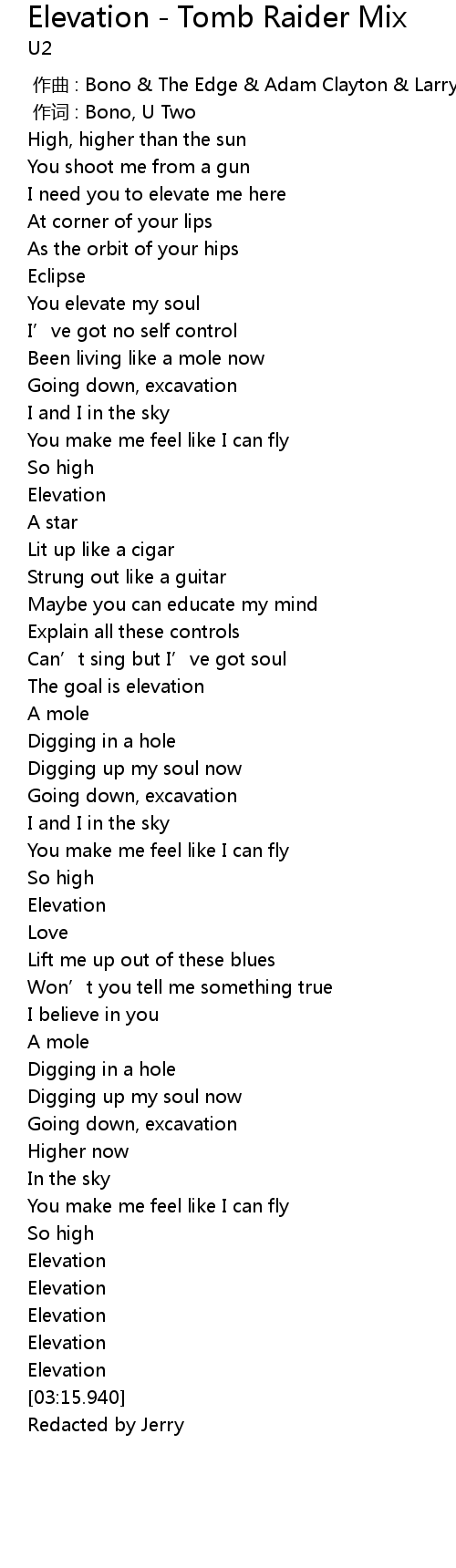 | [00:00.00] | zuò qǔ : Bono The Edge Adam Clayton Larry Mullen |
