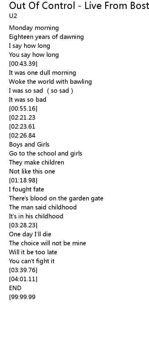 | [03:41.00][02:21.23][01:20.65][00:56.44] | I was of a feeling it was out of control |
