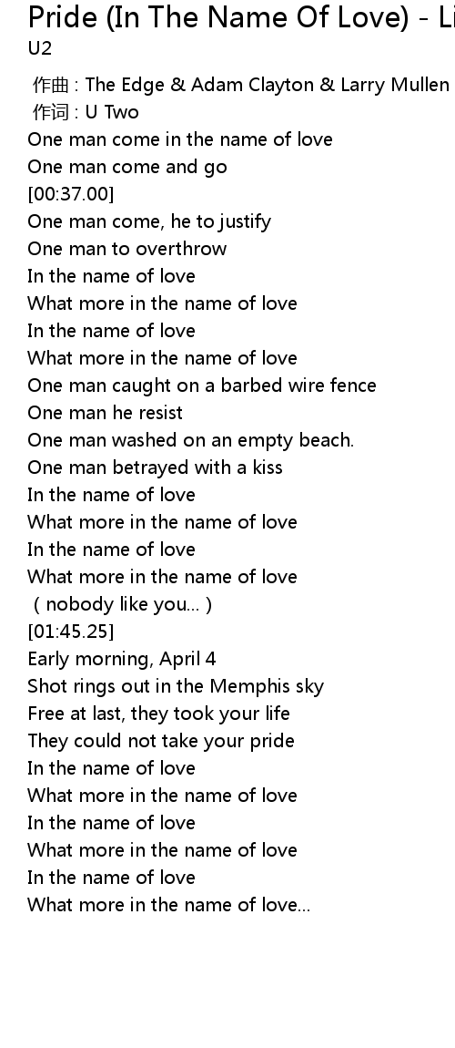 | Song | Pride (In The Name Of Love) - Live - Rattle & Hum Version |