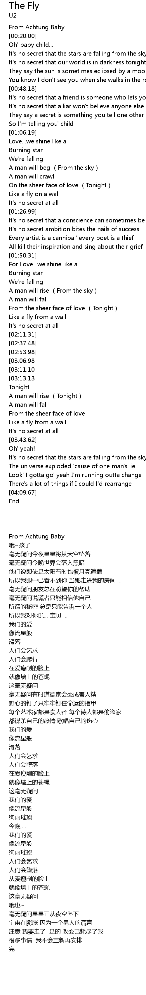 | [00:12.00] | From Achtung Baby |
