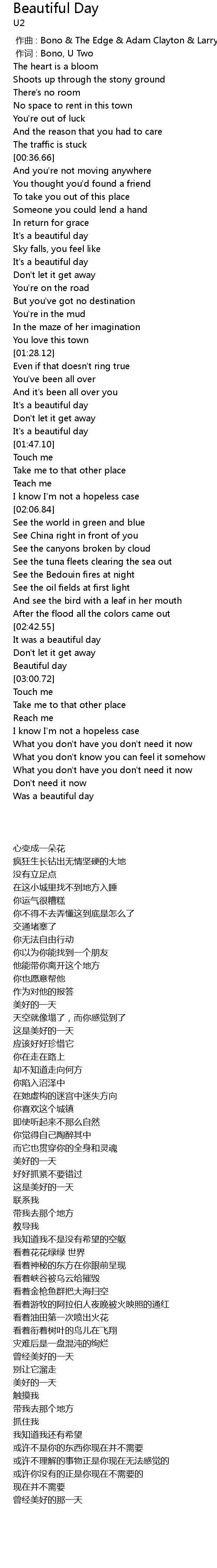 | [00:00.00] | zuò qǔ : Bono The Edge Adam Clayton Larry Mullen |
