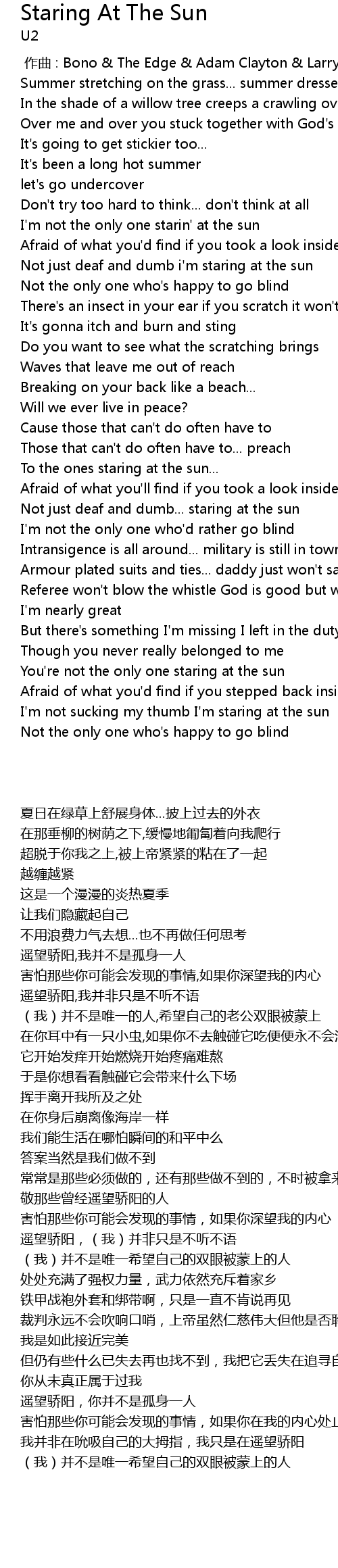 | [00:50.64] | I' m not the only one starin' at the sun |