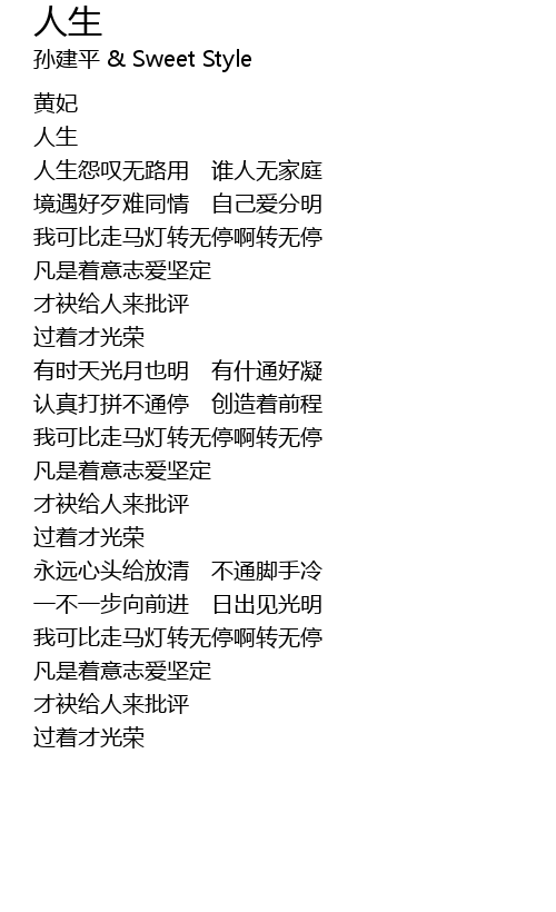 | [00:22.26] | rén shēng yuàn tàn wú lù yòng shuí rén wú jiā tíng |