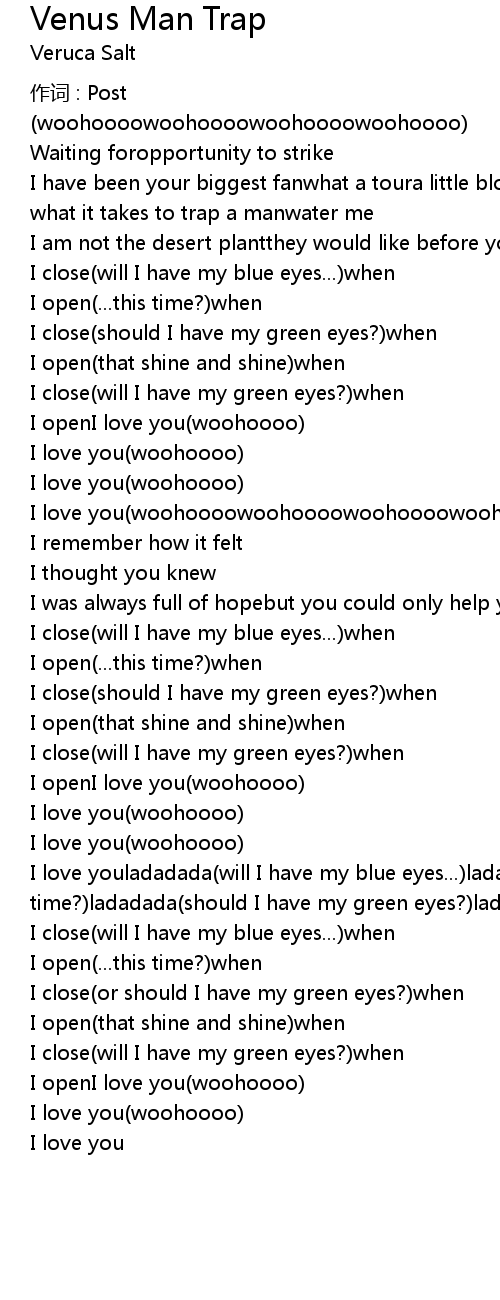 | I love youladadada(will I have my blue eyes...)ladadada(...this time?)ladadada(should I have my green eyes?)ladadada(that shine and shine)when | |