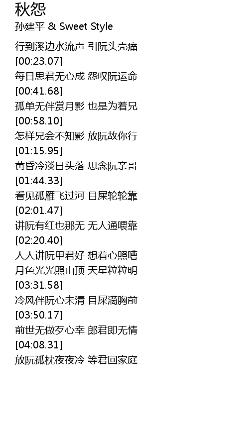 | [04:10.10] | 放阮孤枕夜夜冷 等君回家庭 |