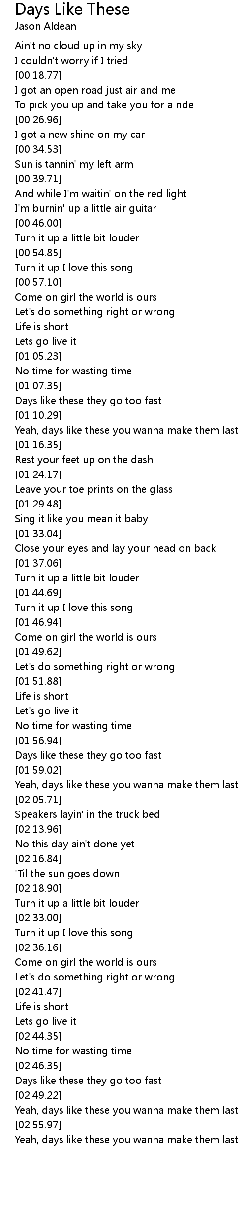 Days like these they go too fast |