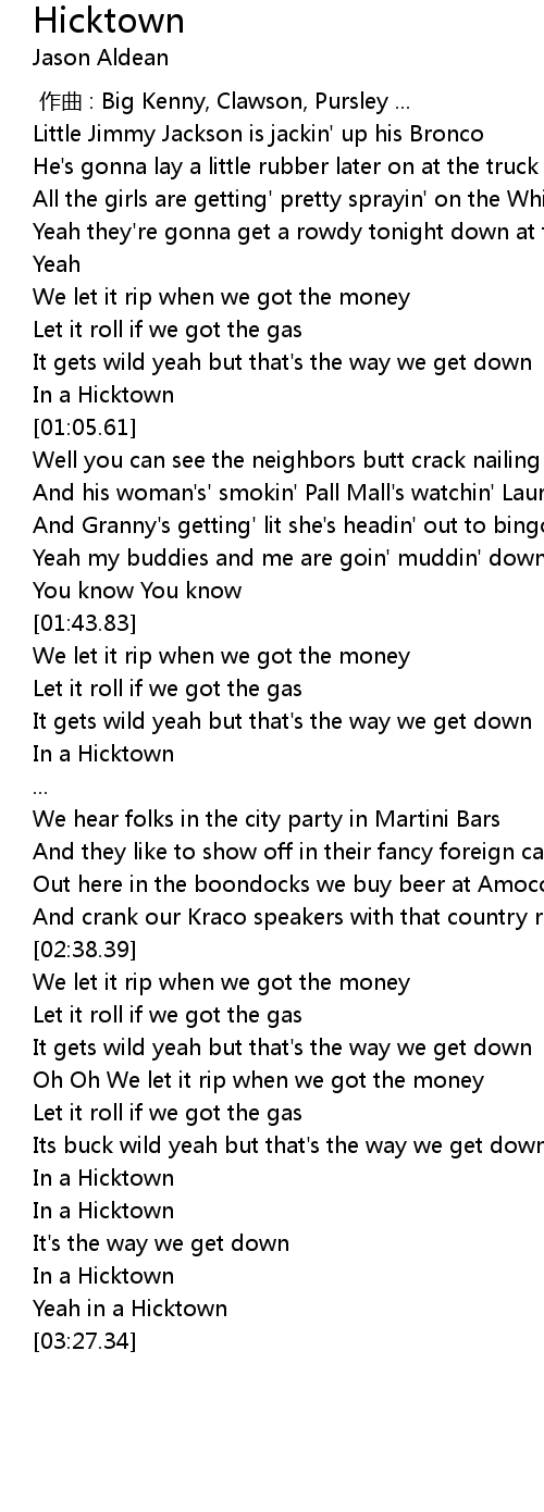 | [01:58.97] | In a Hicktown |