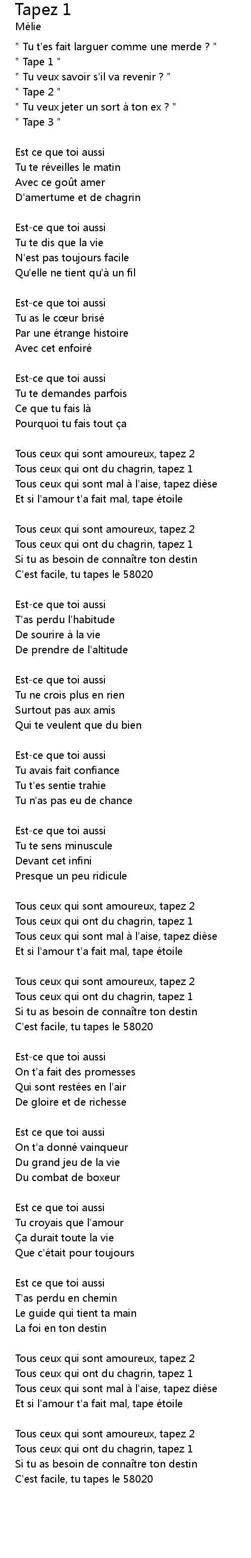 | Tous ceux qui sont amoureux, tapez 2 | |