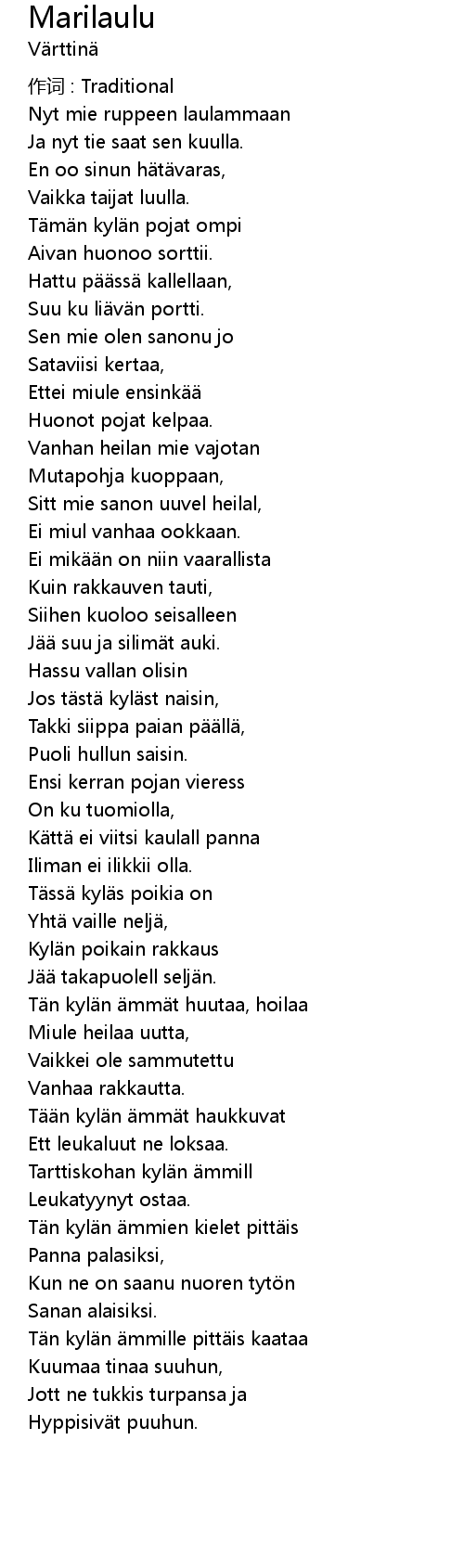 | Nyt mie ruppeen laulammaan | |