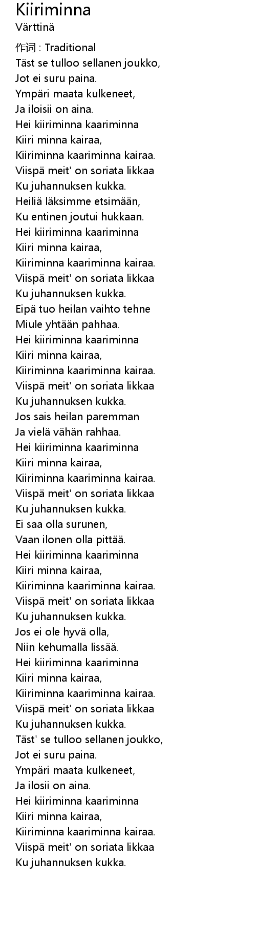 | Hei kiiriminna kaariminna | |