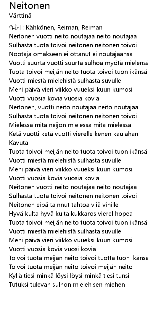 | Toivoi tuota meij n neito toivoi tuotta tuon ik ns | |