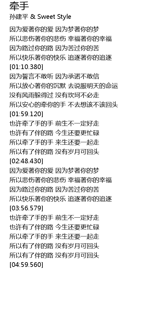 | [03:59.960] | 也许牵了手的手 前生不一定好走 |