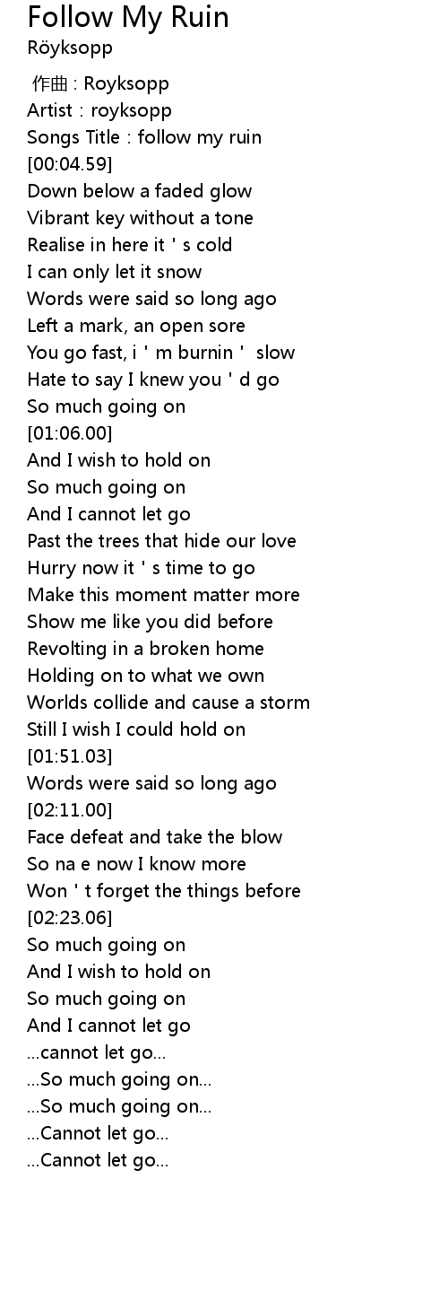 | [00:02.21] | Songs Title:follow my ruin |