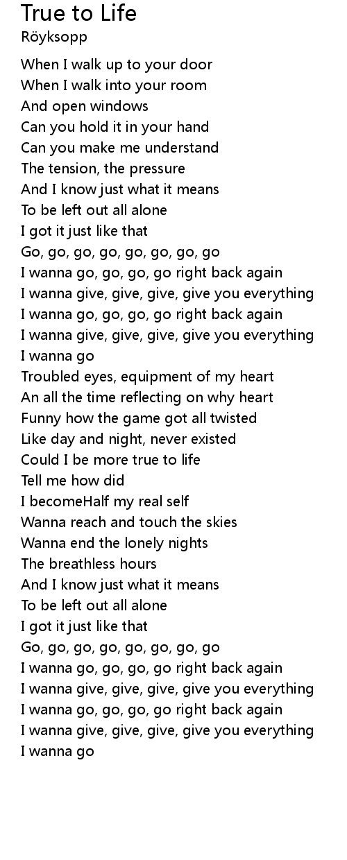 | Could I be more true to life | |