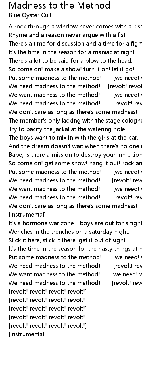 | We want madness to the method! [we need! we need! we need! we need!] | |