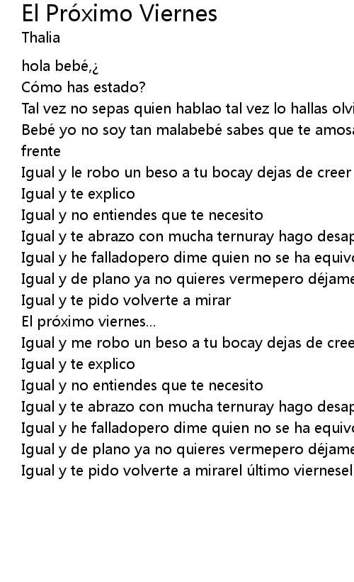 | Igual y te pido volverte a mirarel ú ltimo viernesel proximo viernes |