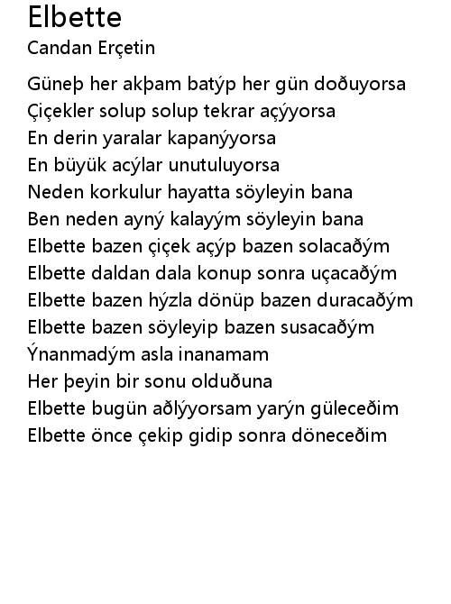 | Song | Elbette |