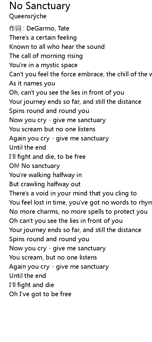 | Again you cry give me sanctuary | |