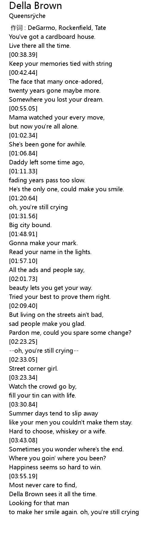 | [00:00.00] | 作词 : DeGarmo, Rockenfield, Tate |