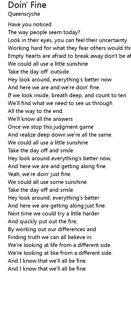 And I know that we'll all be fine. |