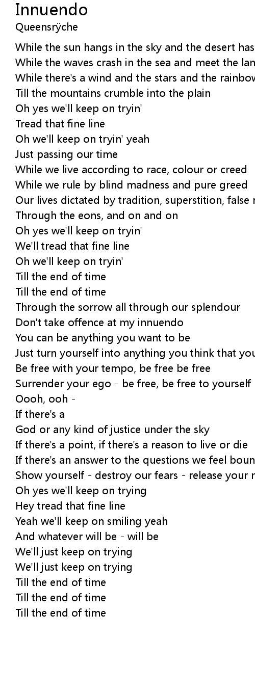 Oh we'll keep on tryin' yeah |