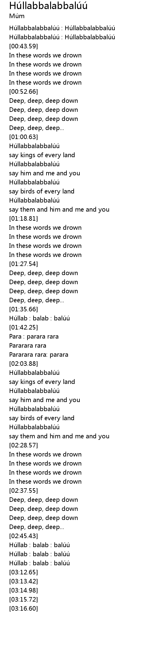 | [00:34.94] | Hú llabbalabbalúú : Hú llabbalabbalúú |
