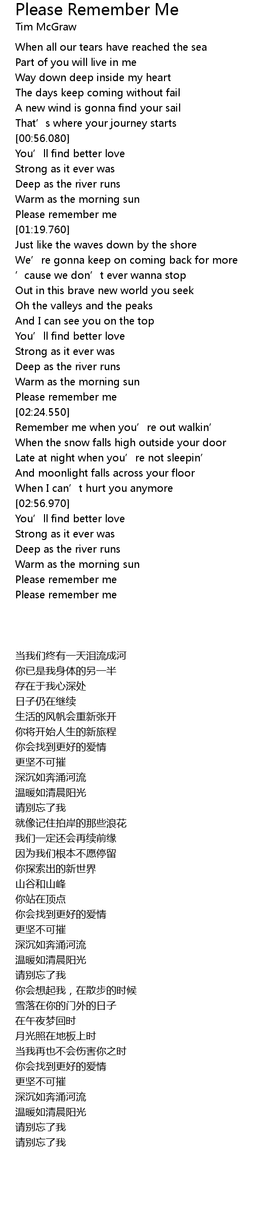 | [01:10.100] | Please remember me |