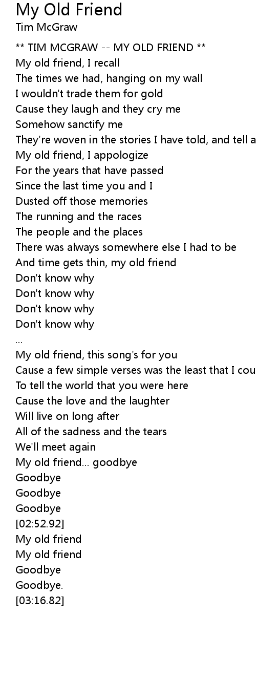 ** TIM MCGRAW -- MY OLD FRIEND ** |