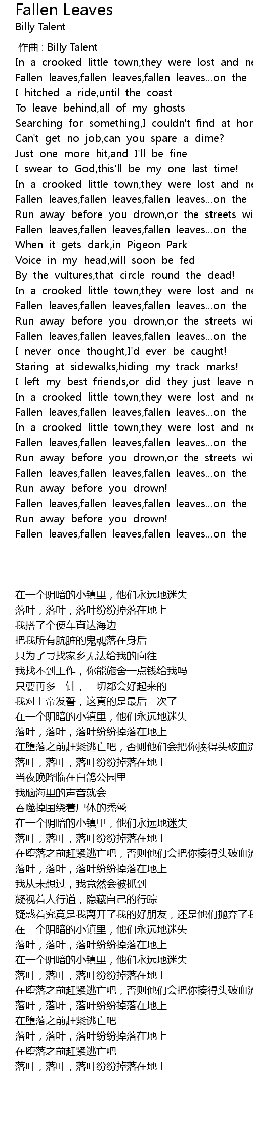 | [02:31.312] | Fallen leaves, fallen leaves, fallen leaves... on the ground |
