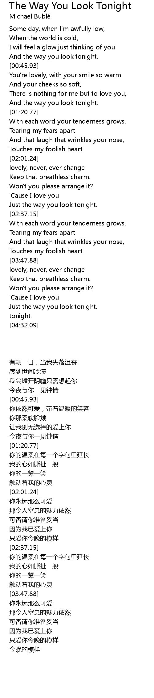 [04:09.35] Just the way you look tonight.