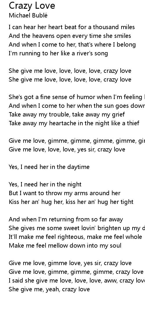 Give me love, gimme love, yes sir, crazy love |