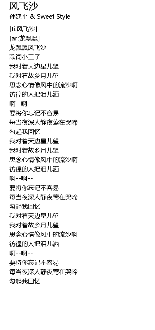 | [02:38.48] | 思念心情像风中的流沙啊 |