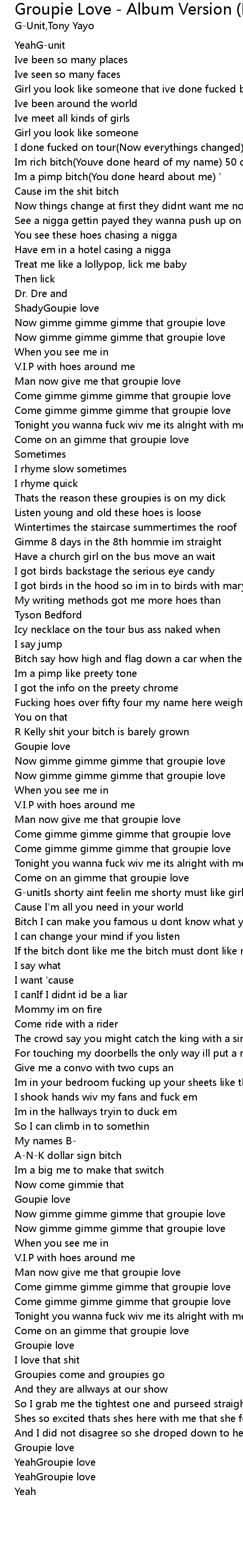 | Come on an gimme that groupie love | |