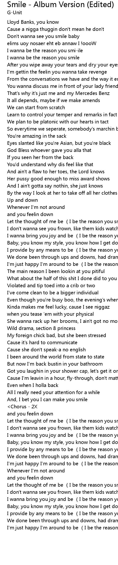 | [01:33.97] | I provide by any means to be I be the reason you smile |