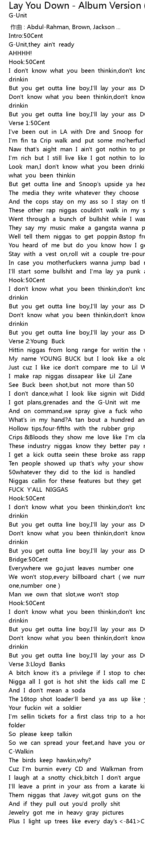 | [03:01.62] | But you get outta line boy,I'll lay your ass DOWN |